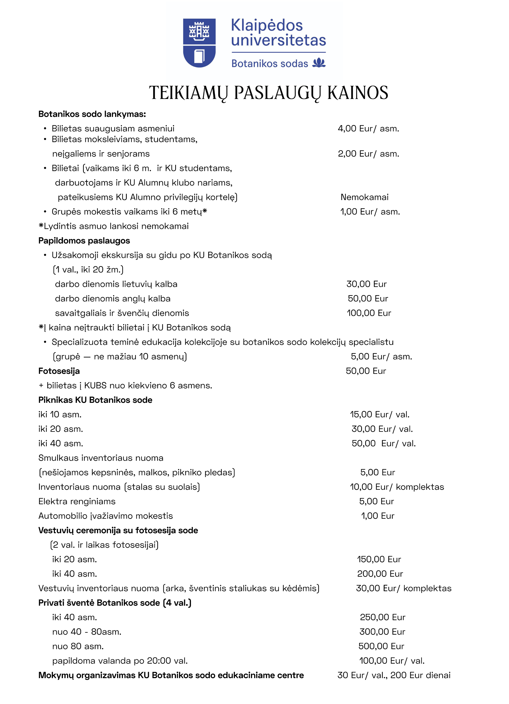 Telefonu: (0 46) 398833; el. paštu: botanikos.sodas@ku.lt